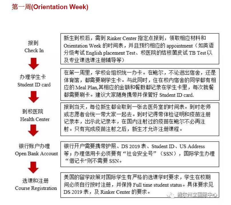 2.      学生到达美方大学后会参加英语水平考试(如托福成绩>79,雅思>6.5则不必参加)。按考试成绩分级,进入英语学习机构简称“IEI”(IntensiveEnglish Institute),只有通过IEI六级考试之后才可进行专业课学习。
