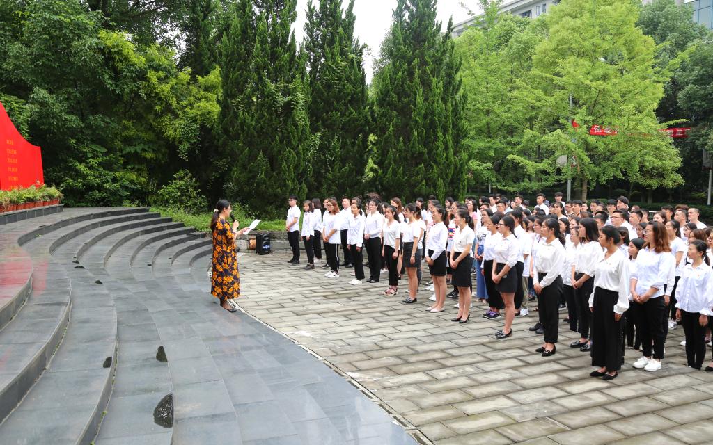2018年6月14日中午,经济与管理学院在学校党员承诺墙隆重举行学生新党员入党宣誓,老党员重温誓词宣誓活动。参加本次活动的有学院党委委员、学生支部书记以及全体学生党员。