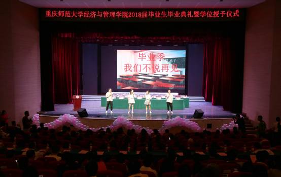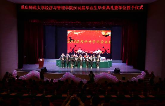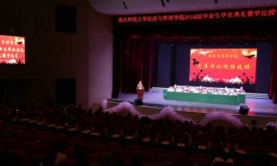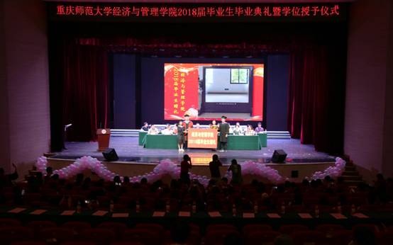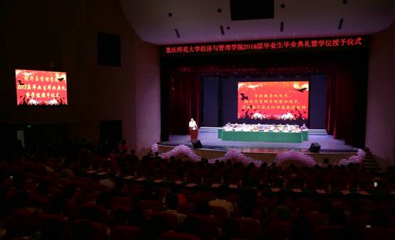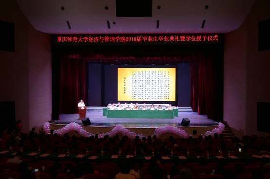 2014年6月14日,经济与管理学院于校友会堂举行2018届毕业典礼暨学位授予仪式。重庆师范大学教务处处长、经济与管理学院学位分委员会主席田盈,经济与管理学院党委书记税强、副院长喻科、副院长陈道平、党委副书记任源钢以及经管学院全体教职工与毕业生和家长代表们分享了这一神圣、难忘的美好时刻。