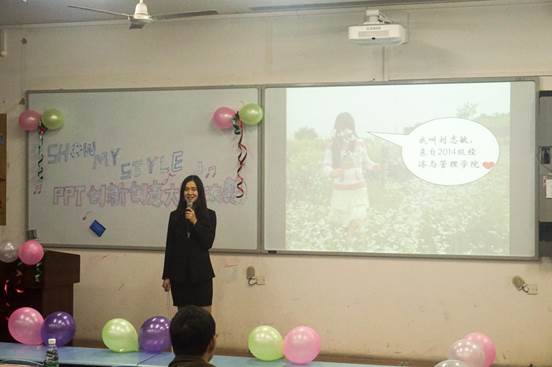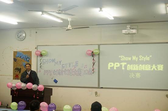 ??? 为了提高学生的PPT制作能力,提升同学们的整体素质,4月27日晚19:30在宏德楼15204教室,经济与管理学院团总支学生会宣传部携手喵星人PPT协会、商务PPT兴趣小组共同举办了PPT创新大赛。本次决赛由经济与管理学院PPT兴趣小组指导老师任力、外国语学院荣鑫阁教授、传媒学院方龙共同担任赛事评委,共有19个团队入围此次决赛。