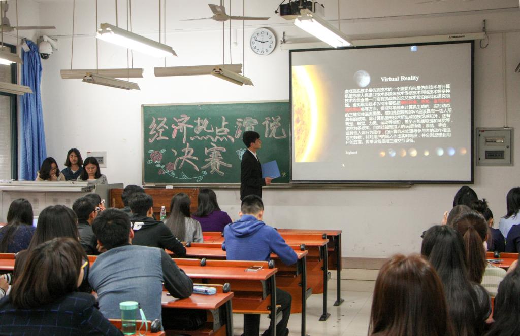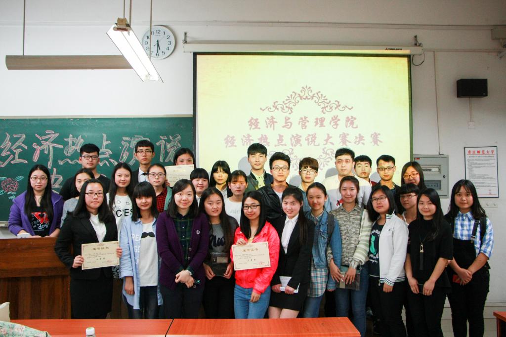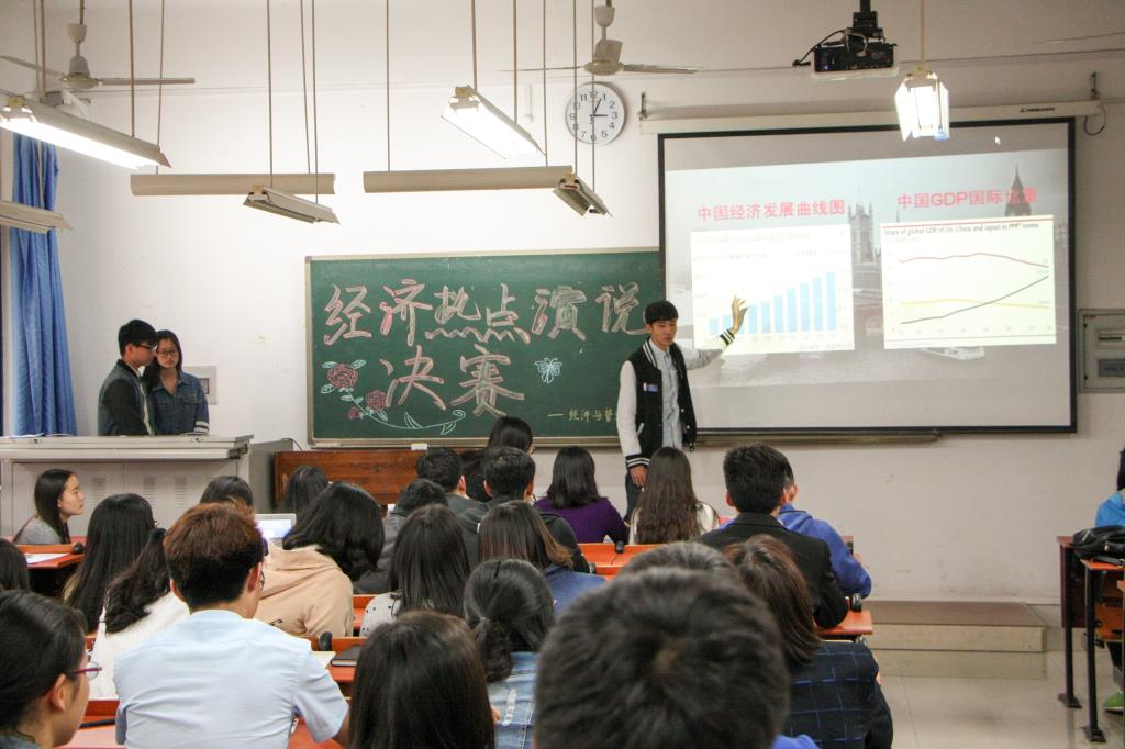 本次经济热点演说决赛将PPT与演说、答辩结合起来,既考验同学们对经济热点的分析演讲能力,同时在答辩过程中不断积累经验,促进成长。“四大天王”组合聚焦两会,关注中国经济发展问题;“热点不冷”组合注重韩剧所带来的经济影响;“快乐小队”关注经济,并表示对中国经济抱有希望,迎来开门红。参赛选手们在讲台上淋漓尽致的展示着自己的成果,面对老师提问从容不迫、沉着冷静,机会是留给有准备的人。最后,“四大天王”与“AD”组合并列第一,获得第一名。“快乐小队”、“TOT”获得决赛二等奖。“四人行”、“合伙人”、“热点不冷”获得决赛三等奖。