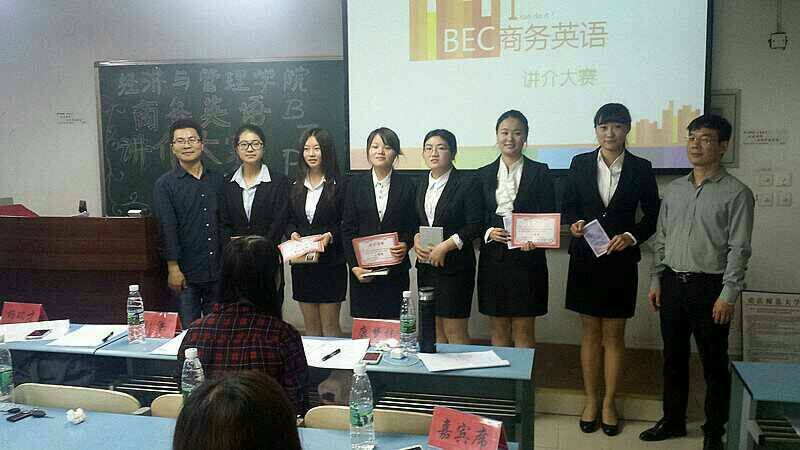 ? 为提高同学们的英语学习热情,增强自主学习能力,3月26号我校经济与管理学院在励志楼103举办了“商务英语讲解大赛”。