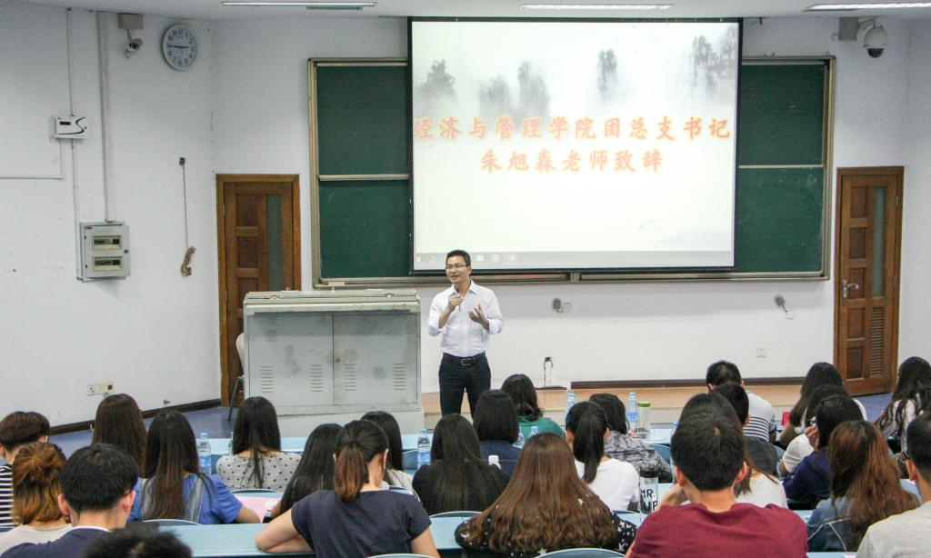 2016年6月2日下午,经济与管理学院第十一届团总支?学生会换届选举大会在15205举行,我院党委副书记任源钢、团总支书记朱旭森以及各年级辅导员参与此次选举大会。选举共分笔试、老师评分、现场展示三个环节,总分排名前三者将组成新一届的学生会主席团。